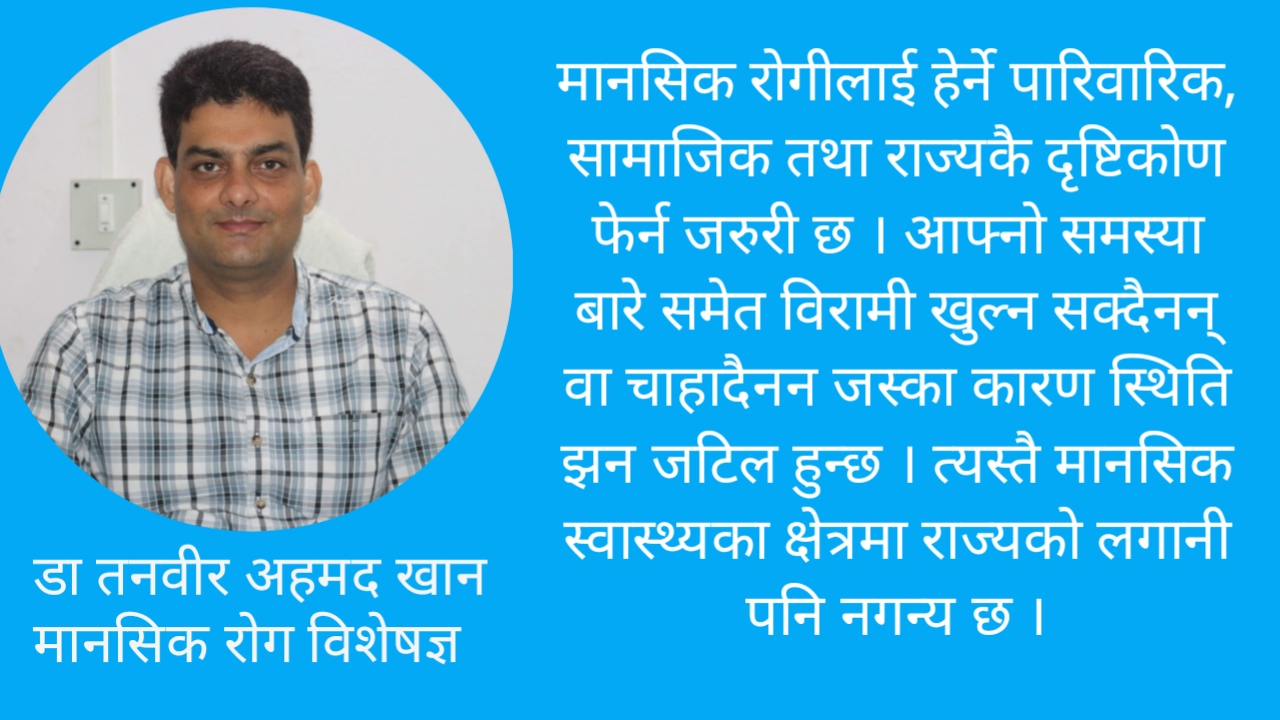 (मानसिक रोग विशेषज्ञ डा तनवीर अहमद खानसँगको कुराकानीमा आधारित)