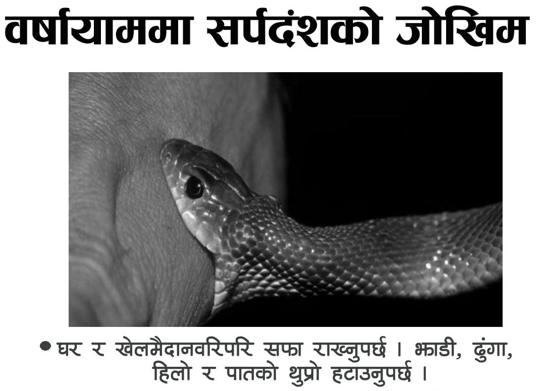 – बालबालिकालाई सर्प बस्न सक्ने ठाउँबारे सचेत गराउनुपर्छ । विषालु सर्पको डसाइबारे उनीहरूलाई जानकारी दिनुपर्छ ।