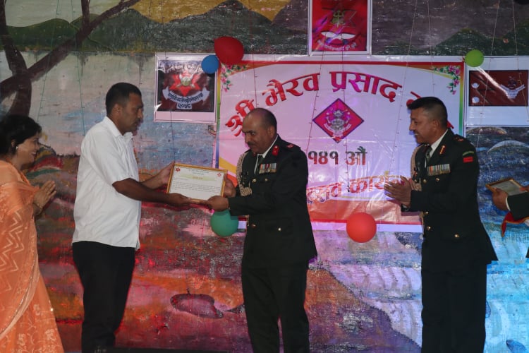 नेपालगन्जः जनस्वास्थ्य अधिकृत नरेश श्रेष्ठलाई नेपाली सेनाले सम्मान गरेको छ । भैरब प्रसाद गणको १४१ औं बार्षिक उत्सवको अवसर पारेर उत्तर पश्चिमपृतना हेड क्वाटर, निमारे ब्यारेक सुर्खेतले बुधवार साँझ श्रेष्ठसहित जिल्ला प्रशासन कार्यालयका प्रशासकिय अधिकृत रामकुमार सोनकर र शिक्षक माधवी शाहलाई सम्मान गरेको हो ।