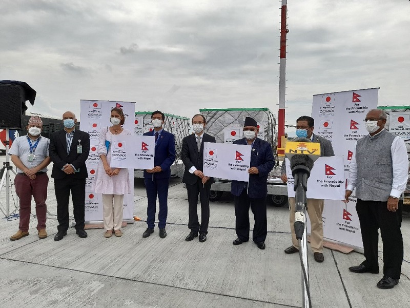 काठमाडौंः जापानबाट कोरोनाविरुद्धको कोभिशिल्ड खोप नेपाल आइपुगेको छ । जापानले पठाउने भनेको १६ लाख डोजमध्ये पहिलो चरणमा आज शनिबार बिहान ९ बजे पाँच लाख १३ हजार डोज खोप आइपुगेको हो ।