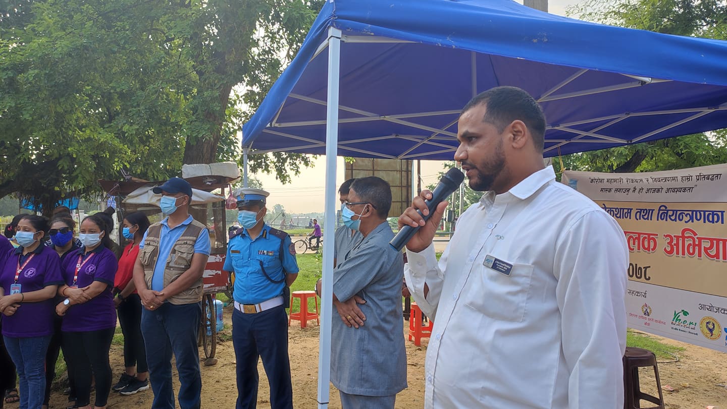 कोरोना महामारी रोकथाम र नियन्त्रणमा हाम्रो प्रतिबद्धता मास्क लगाउनु नै हो आजको आवश्यकता भन्ने मुल नाराका साथ भएको कार्यक्रममा कोहलपुरका मेयर लुटबहादुर रावतले कोभिड नियन्त्रणका लागि आम नागरिकहरुले मास्क लगाउनु, भौतिक दुरी कायम गर्नु नै प्रमुख विकल्प भएको बताउनुभयो ।