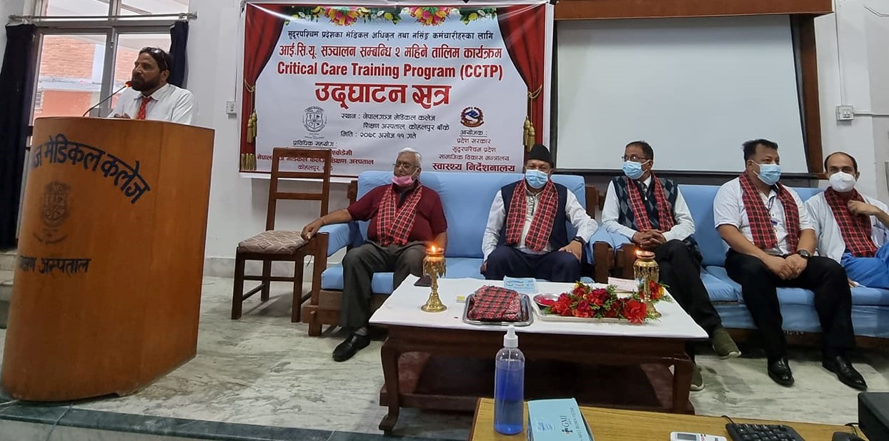 सुदूरपश्चिम प्रदेश सामाजिक विकास मन्त्रालय स्वास्थ्य निर्देशनालयको आयोजना तथा लर्डबुद्ध एकेडेमी नेपालगन्ज मेडिकल कलेज शिक्षण अस्पताल कोहलपुरको प्राविधिक सहयोगमा आयोजना गरिएको तालिमको उद्घाटन समारोहलाई सम्वोधन गर्दै सुदूरपश्चिम प्रदेशका सामाजिक विकास मन्त्री लालबहादुर खड्काले प्रदेशका सरकारी अस्पतालका मेडिकल अधिकृत तथा नर्सिङ स्टाफहरुलाई आईसीयू संचालनदेखि क्रिटिकल केशहरुको व्यवस्थापनमा दक्ष बनाउन तालिम आयोजना गरिएको बताउनुभयो ।