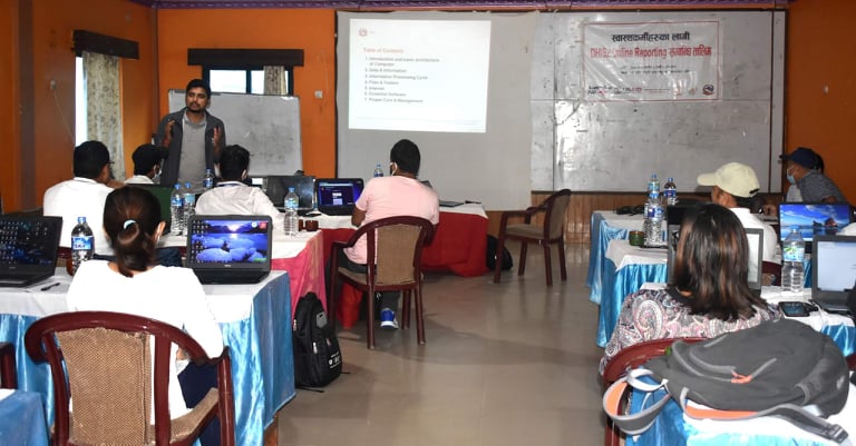 तालिममा स्वास्थ्य ब्यवस्थापन सूचना प्रणालीको बारे जानकारी, तथ्याङ्क इन्ट्री गर्ने तरिका, तथ्याङ्कको विश्लेषण, तथ्याङ्कको प्रस्तुतीकरण र तथ्याङ्कको सही प्रयोग बारे प्रशिक्षण गरिने बी–ग्रुपका फिल्ड सुपरभाईजर सम्झना चौधरीले जानकारी दिनुुभयो ।