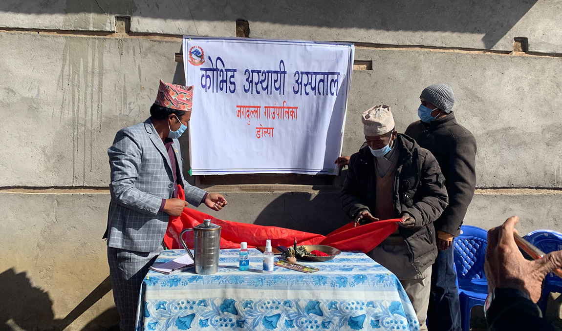 डोल्पाको जगदुल्ला गाउँपालिकामा कोभिड अस्पताल सञ्चालन गरिएको छ। बढ्दो कोरोना भाइरसबाट संक्रमितको उपचार गर्न गाउँपालिकामा ५ बेडको कोभिड अस्पताल सञ्चालन गरिएको हो ।