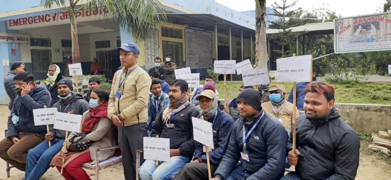 स्वास्थ्यकर्मीहरूले मंगलबारदेखि अस्पतालका आकस्मिकबाहेकका सेवा बन्द गरी अस्पतालमै धर्ना सुरु गरेका छन्।