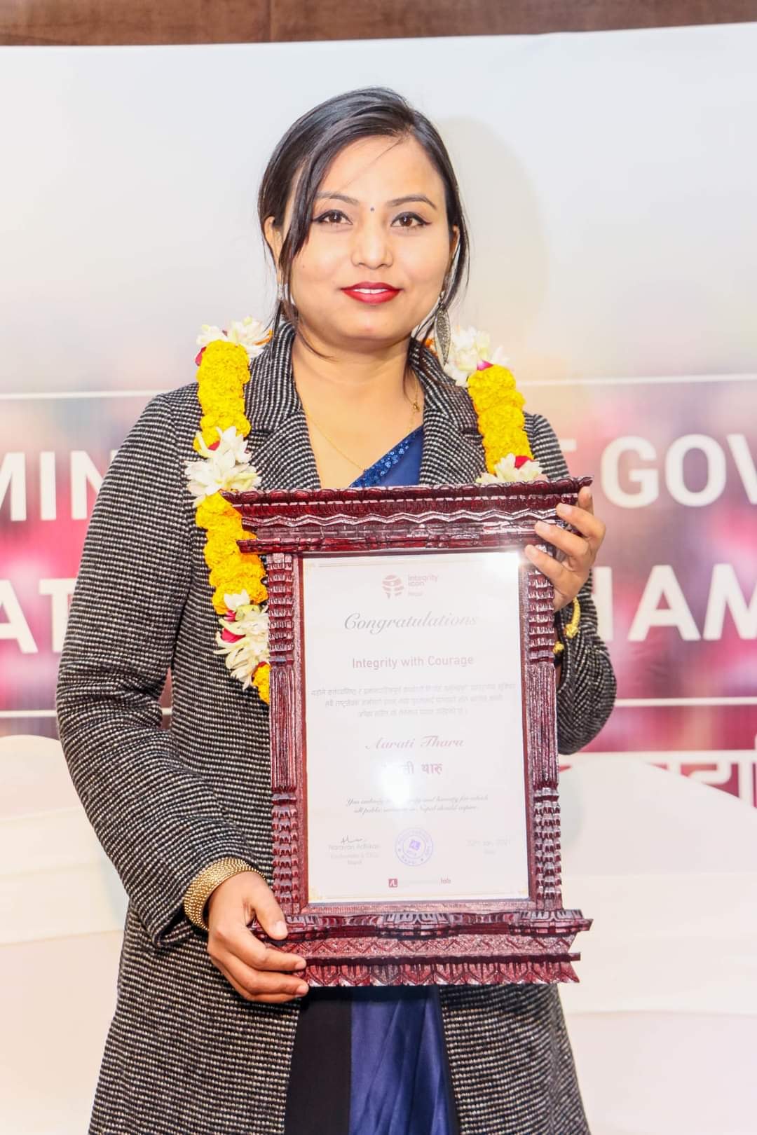 नेपालगञ्ज उपमहानगरपालिका १२ स्थित स्वास्थ्य चौकीमा कार्यरत जनस्वास्थ्य निरीक्षक थारु इन्टिग्रिटी आइकन नेपाल २०२० बाट सम्मानित हुनु भएको थियो ।