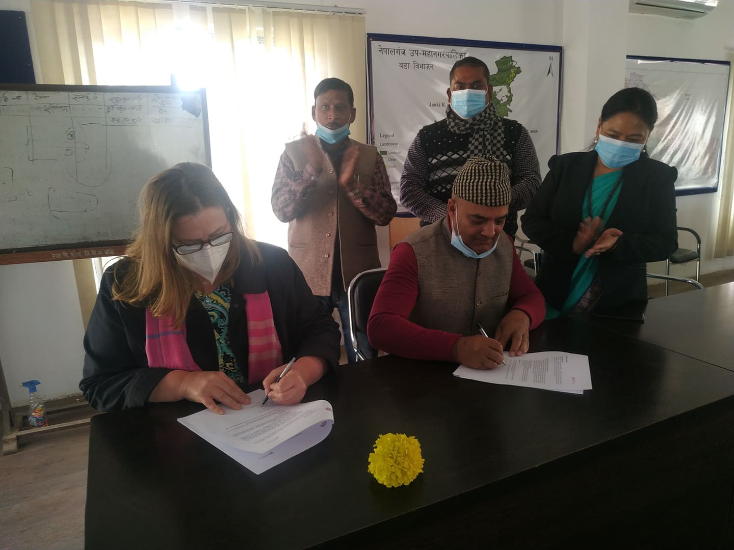 समभ्mदारीत्रिमा नेपालगञ्ज उप–महानगरपालिकाका प्रमुख डा. धवलशम्शेर राणा र जिआईजेड स्वास्थ्य क्षेत्रका लागि सहयाग कार्यक्रमका प्रमुख प्राविधिक सल्लाहकार एलेक्कजेन्ड्रा पुलुस्केले हस्ताक्षर गर्नुभयो । स्वास्थ्यजन्य फोहार व्यवस्थापनका लागि प्राविधिक तथा उपकरणहरुको सहयोग जिआईजेडले गर्ने भएको छ ।