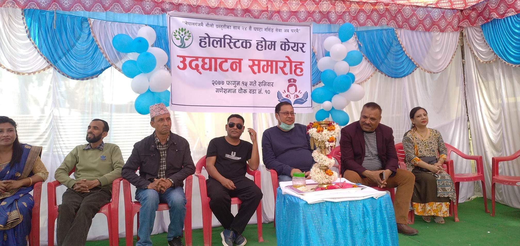नेपालन्जमा कार्यरत नर्सिङ स्टाफ र फिजियोथेरापिस्टहरुको समुहले सन्चालन गरेको होलस्टिक होम केयरको आज एक कार्यक्रमका बिच जिल्ला स्वास्थ्य कार्यलयका प्रमुख धिरजङ शाहले उद्घाटन गर्नुभयो ।
