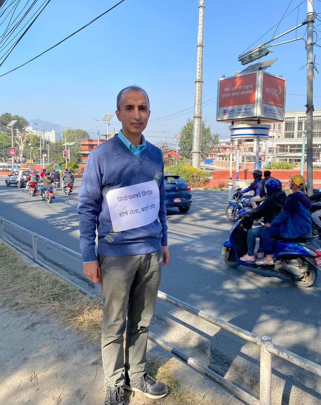 नेपालगन्ज: नेपाली कांग्रेसका महामन्त्री गगन थापाले सरकारको नेतृत्व दावी गरेर आन्तरिक र बाह्य दबाब सिर्जना गरिरहेका बेला शनिबार माइतीघर मण्डलामा अनौठो प्रदर्शन भयो । विरोध प्रदर्शनस्थलका रुपमा चर्चित माइतीघर मण्डलामा तीनजना मात्र प्रदर्शनकारी थिए ।