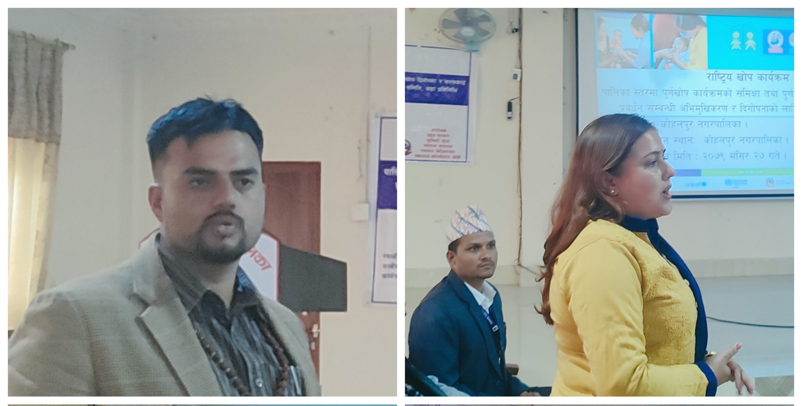 नेपालगन्जः कोहलपुर नगरपालिकामा आज पूर्ण खोप कार्यक्रमको समीक्षा तथा पूर्ण खोप दीगोपना र सरसफाई प्रबद्र्धन योजना तयारी सम्बन्धि गोष्ठी सम्पन्न भएको छ ।