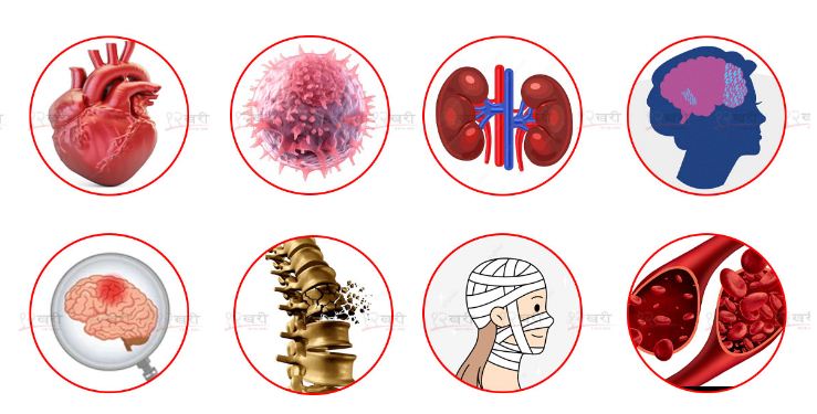 साथै पार्किन्सन्स, अल्जाइमर्स, हेड इन्जुरी (टाउकोको गम्भीर चोट), स्पाइनल इन्जुरी (मेरुदण्डको गम्भीर चोट) र सिकलसेल एनिमियाका बिरामीलाई पनि एक लाख रुपैयाँसम्म छुट हुने छ । सरकारले चालु आर्थिक बर्षमा यी आठ रोगहरूमा विपन्न नागरिकका लागि सहुलियत उपचारबापत दुई अर्ब ५० करोड रुपैयाँ बजेट छुट्याएको छ ।