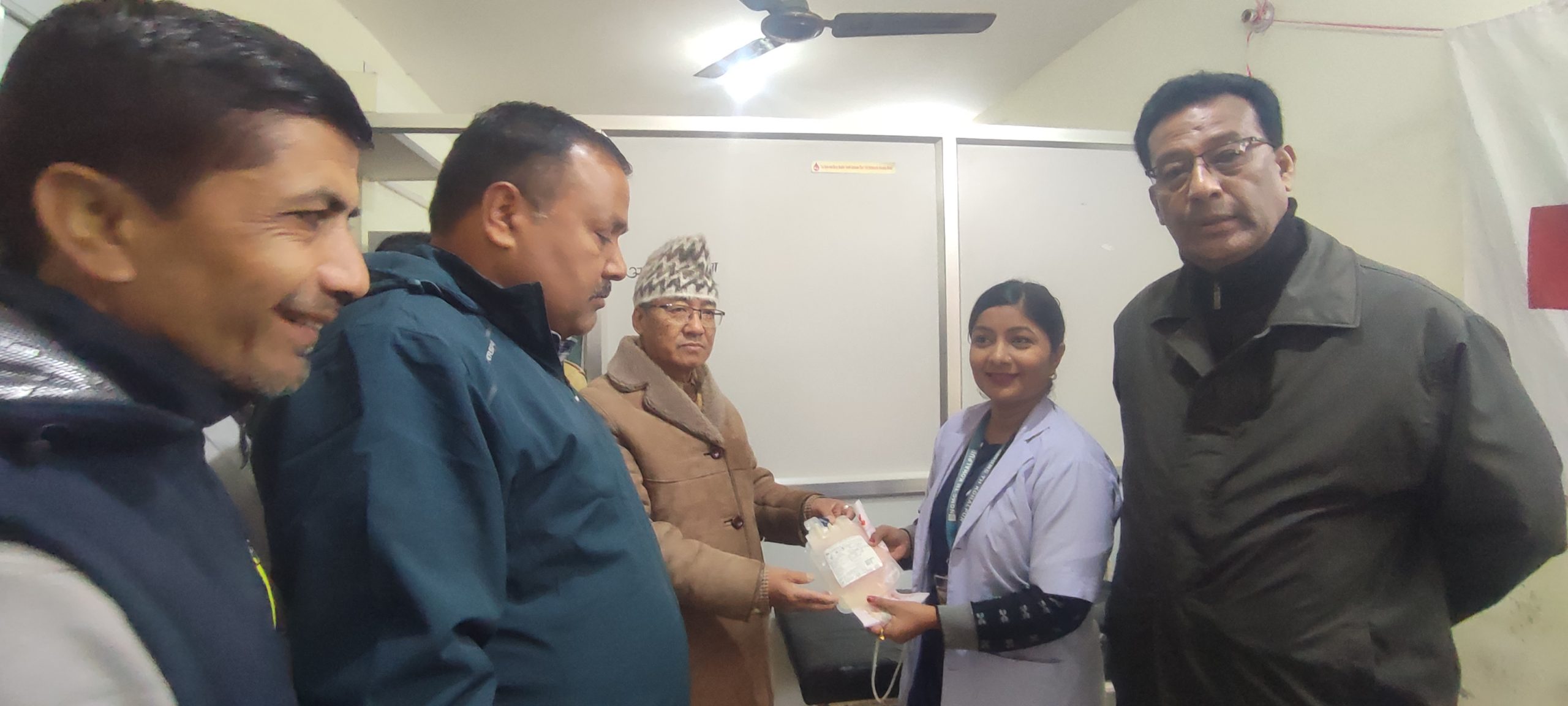 कोहलपुरः लर्ड बुद्ध एजेकेशनल एकेडेमी लिमिटेड कर्मचारी संघ बाँकेले सोमवार कोहलपुरमा बृह्त रक्तदान कार्यक्रम गरेको छ । उक्त रक्तदानमा ८५ जनाले रक्तदान गरेको कार्यक्रम संयोजक अभिशेष सिंह ठकुरीले जानकारी दिनुभयो । संघका केन्द्रीय अध्यक्ष यमबहादुर खड्का र नेपालगन्ज मेडिकल कलेज शिक्षण अस्पातलका निर्देशक प्रोफेसर डा.रेशमबहादुर रानाले उपसभापति अञ्जु न्यौपानेलाई ब्लडको पोको हस्तान्तरण गर्दै रक्तदान सुरु गर्नुभएको हो ।
