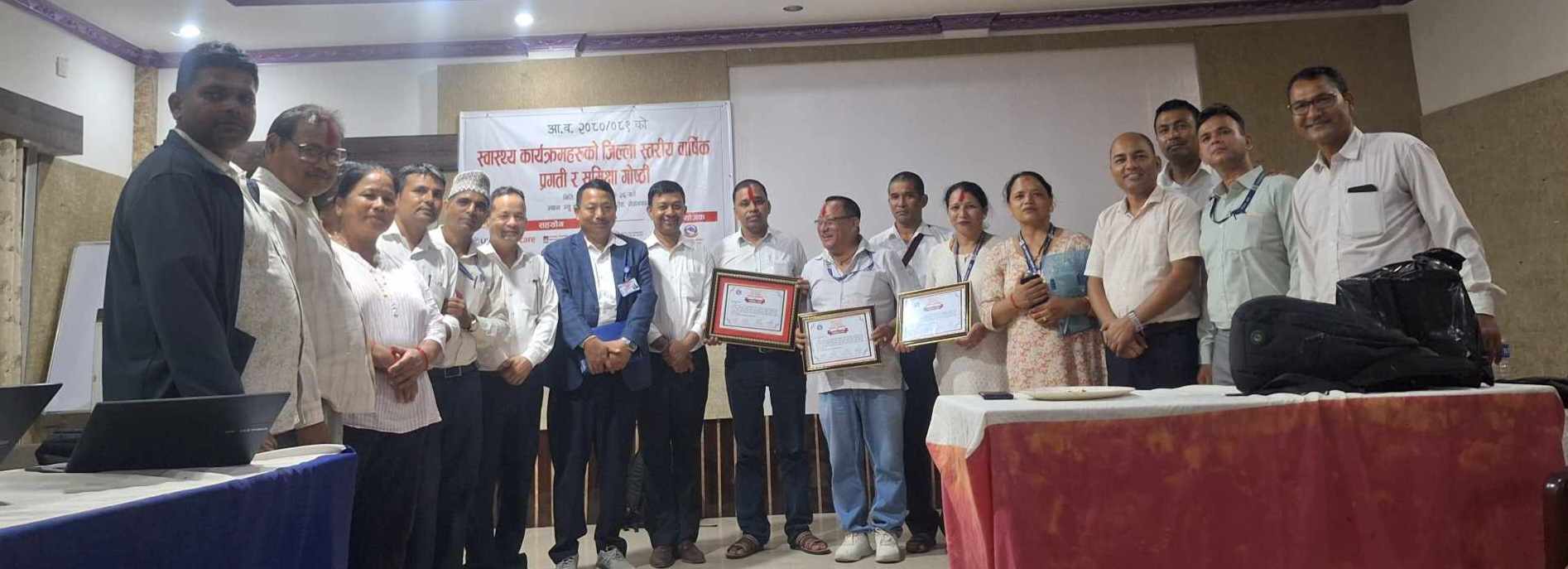 समिक्षा कार्यक्रमको अवसरमा जिल्लामा उत्कृष्ट भएका स्वास्थ्य संस्थाहरुलाई प्रमाणपत्रले सम्मानित गरिएको स्वास्थ्य कार्यालय बाँकेका प्रमुख अंगद बहादुर शाहीले बताए ।