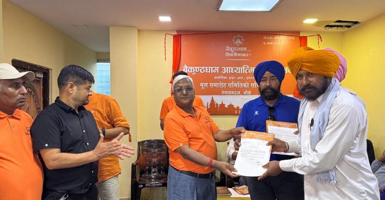 नेपालगन्जः नेपालगन्जमा भोलिदेखि बैकुण्ठधाम आध्यात्मिक महोत्सव सुरु हुने भएको छ । बैकुण्ठधाम आध्यात्मिक महोत्सवको सम्पूर्ण तयारी पूरा भएको महोत्सव आयोजक मूल समितिका संयोजक डा.सुरेश कुमार कनोडियाले जानकारी दिए । कार्तिक ३० गतेसम्म चल्ने महोत्सवको उद्घाटन अघि महोत्सवस्थल रामलिलाबाट विहान भव्य कलासयात्रा निकालिनेछ ।