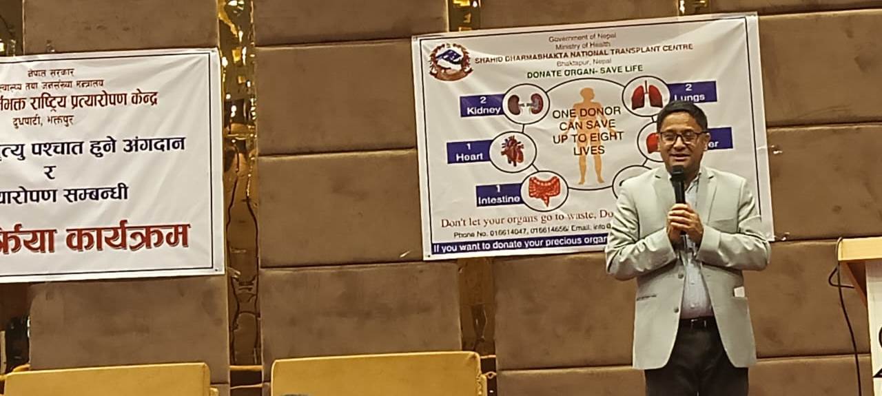 नेपालगन्जः मानव अगं प्रत्यारोपण विज्ञ डा.पुकारचन्द्र श्रेष्ठले मस्तिष्क मृत्यु पश्चात अंगदान गर्न सकिने कुरालाई आमसर्वसाधरण नागरिकमाझ बुझाउन जरुरी रहेको बताएका छन् । भेरी अस्पतालमा मिर्गौला प्रत्यारोपण सेवा प्रारम्भ गरेपछि आयोजित मस्तिष्क मृत्यु पश्चात हुने अंगदान र प्रत्यारोपण कार्यक्रममा उनले यसबारे आमसर्वसाधरणलाई बुझाउन जरुरी रहेको बताए ।