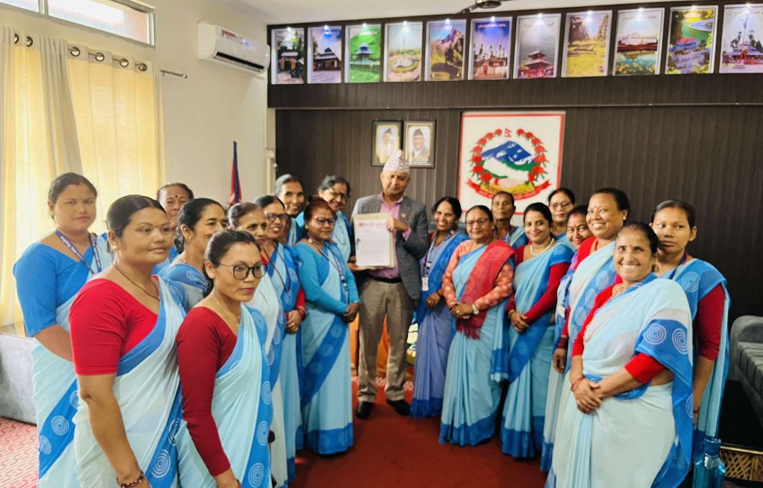 संघकी प्रदेश अध्यक्ष सुनिता शर्माको नेतृत्वमा आएको प्रतिनिधिमण्डलले २०४६ सालदेखि कार्यरत महिला स्वास्थ्य स्वयंसेविकाहरूले अझै पनि सेवा दिइरहेकाले प्रोत्साहनका लागि सरकारले नीति निर्माण गर्नुपर्ने माग राखेको छ । मुख्यमन्त्री आचार्यले महिला स्वास्थ्य स्वयंसेविकालाई अनिवार्य स्वास्थ्य बिमा कार्यक्रममा समावेश गर्ने तथा सामाजिक सुरक्षा कोषमा आबद्ध गराउनेगरी स्वास्थ्य मन्त्रालयलाई योजना बनाउन निर्देशन दिए । लुम्बिनी प्रदेशमा हाल ८ हजार ९ सय ७ जना महिला स्वास्थ्य स्वयंसेविका कार्यरत छन् ।