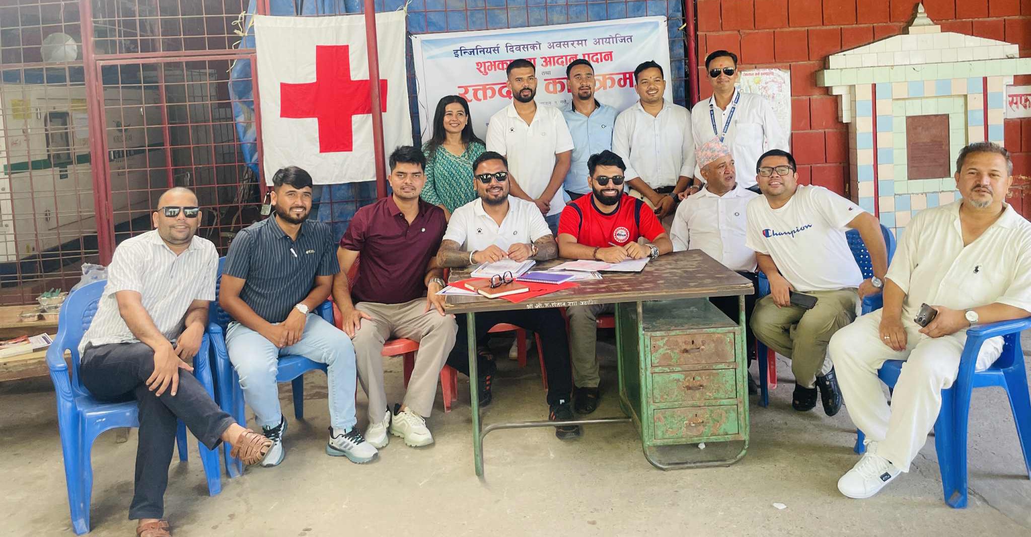 नेपाल इन्जिनियर्स एशोसिएसन लुम्बिनी प्रदेश सभापति इन्जिनियर महेश्वर लम्सालको विशेष उपस्थितिमा आयोजना गरिएको रक्तदान कार्यक्रमको संयोजन इन्जिनियर रुपेश परियारले गरेका छन् । सामाजिक उत्तरदायित्व अन्तर्गत आयोजित रक्तदान कार्यक्रममा ५० जनाको रगत संकलन गर्ने उद्देश्य रहेको इन्जिनियर सुरेन्द्र बोहराले बताए ।