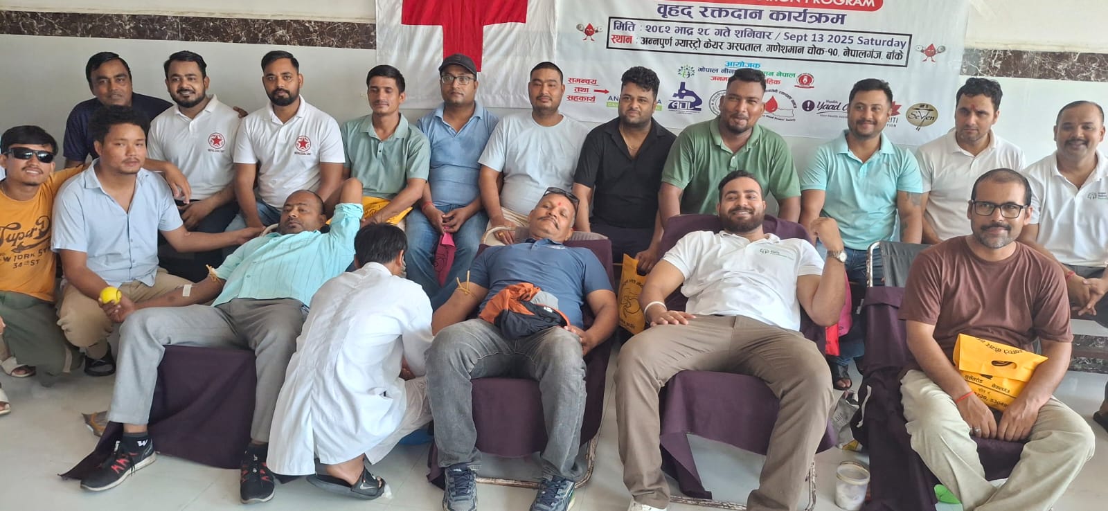 अन्य रक्तदाताहरुमा अपीराथ थारु, अनिल खनाल, आराम्भ वैश्य, करन गुप्ता, एकेन्द्र कुँवर, कमलेश कुमार कर्ण, हेमराज उपाध्याय, प्रकाश कलौनी, वीरेन्द्र पुन, तपेन्द्र परियार, धर्मेन्द्र सिंह, विनोद कुमार तमोली, राज कुँवर, दिनेश कुमार तमोली, जितेन्द्र मिश्र, विष्णु घिमिरे, भगवती घिमिरे, राम बहादुर चौधरी, पवित्रा बुढा, शान्ति थापा, मुकेश श्रेष्ठ, अर्बिन कुमार पाल, विपिन घिमिरे, सुरेश बहादुर खत्री, विशाल जिसी, विष्णु चौधरी, अनुराग पाण्डे, लिलाधर खड्का, रविन थापा, अनुप चौधरी, विकास सारुमगर, गौरव शाक्य, प्रकाश शाही, विजय बुढामगर, उद्योगपति अमित अग्रवाल, विनय कुमार साह, नगेन्द्र विक्रम शाह, हेमन्त थापा, महेशराना क्षेत्री (नेरेसो प्राविधिक), दिर्घराज खनाल, विष्णु अधिकारी, वर्षा अधिकारी, सूर्य राना, नृपमा गिरी, एकता युवा क्लब नेपालगन्ज–२२ पुरैनीका अध्यक्ष राजेश कुमार यादव, लक्ष्मी गुरुङ्ग, प्रशान्त केसी, मोहम्मद अब्दुल, हेमु बिक लगायतले रक्तदान गरेका थिए ।