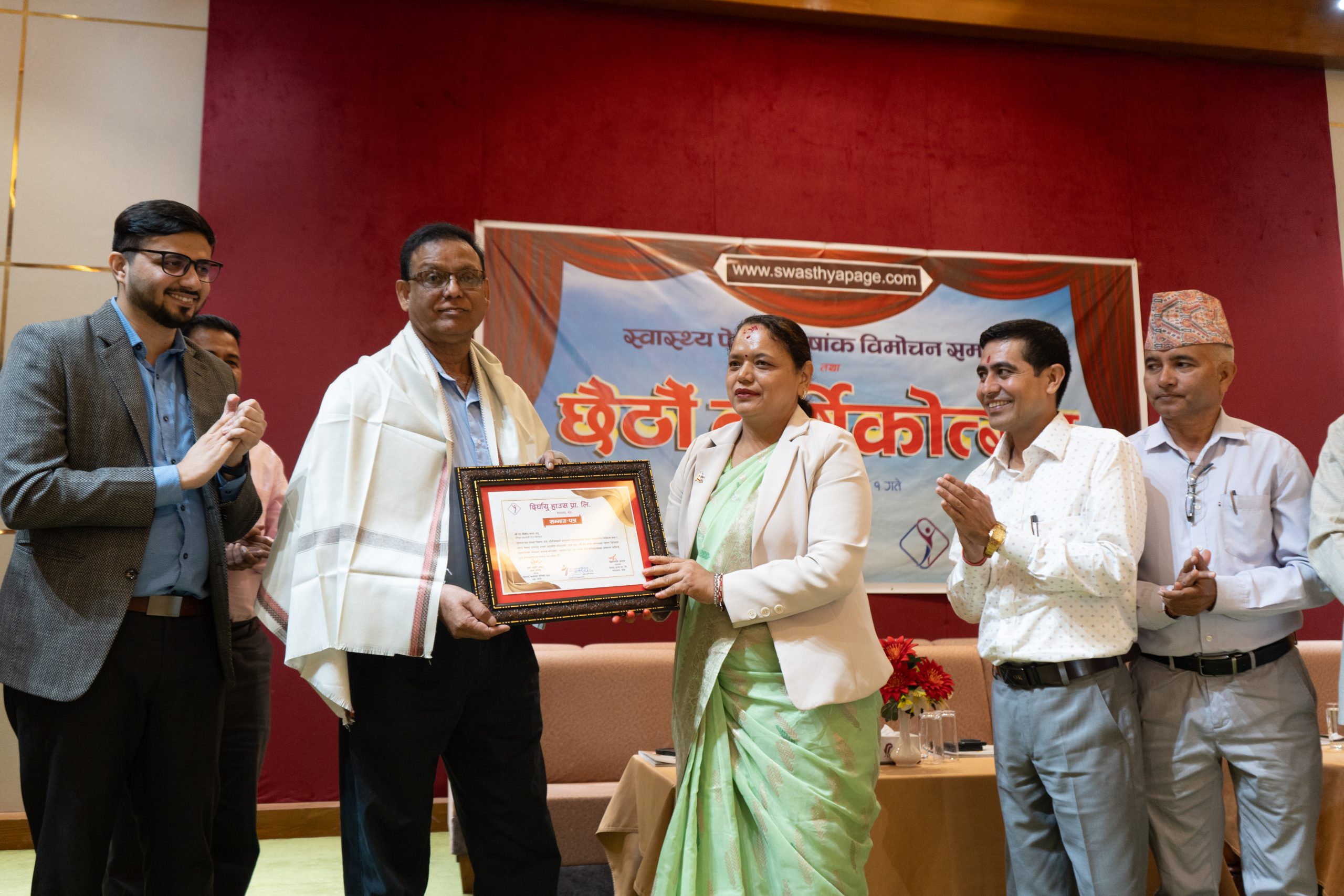 त्यसैगरी यो वर्ष अग्रज चिकित्सक सम्मानबाट बरिष्ठ हाडजोर्नी रोग विशेषज्ञ डा.विनोद थापालाई सम्मानित गरिएको छ । कार्यक्रमका प्रमुख अतिथि श्रेष्ठले खादा र कदरपत्रले सम्मानित गरिन् । त्यसक्रममा डा.थापाले स्वास्थ्यपेज सबै स्वास्थ्यकर्मीको आफ्नै हो भन्ने भावना जागृत हुनुपर्ने बताए ।