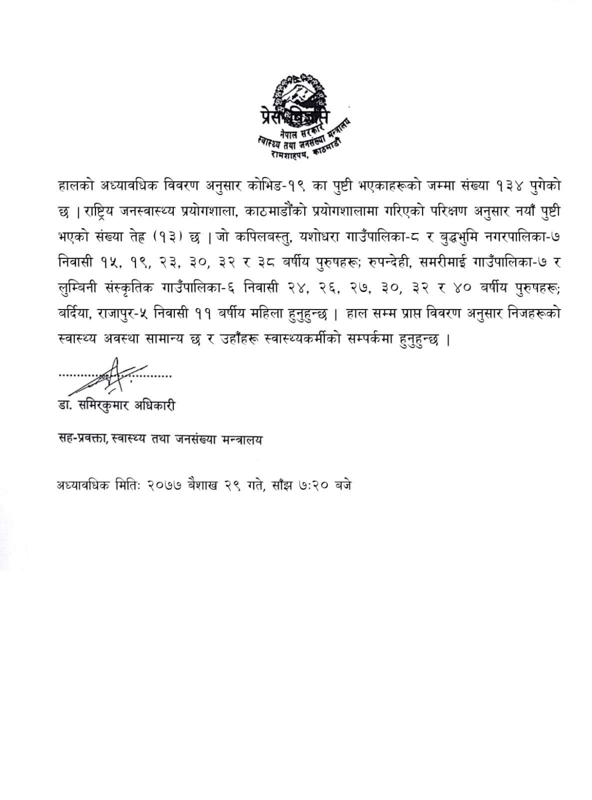 नेपालगन्ज, २९ बैशाख । बर्दियाका ११ बर्षिया बालिकासहित नेपालमा थप १३ जनामा कोरोना भाइरसको संक्रमण...