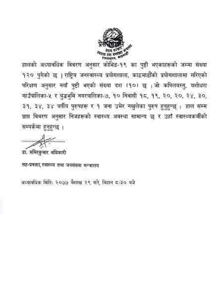 बुटवल, २९ बैशाख । कपिलवस्तुमा १० जनामा कोरोना भाइरसको संक्रमण देखिएको छ। योसँगै नेपालमा संक्रमितको...