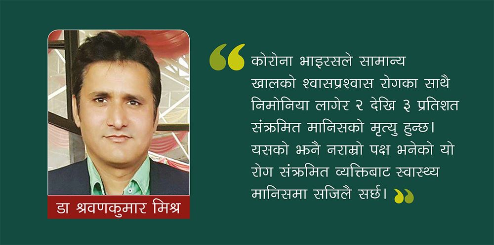 डा श्रवणकुमार मिश्र सन् २०१९ को अन्ततिर उत्पत्ति भएर विश्वव्यापी महामारी गराएको सार्स कोरोना...
