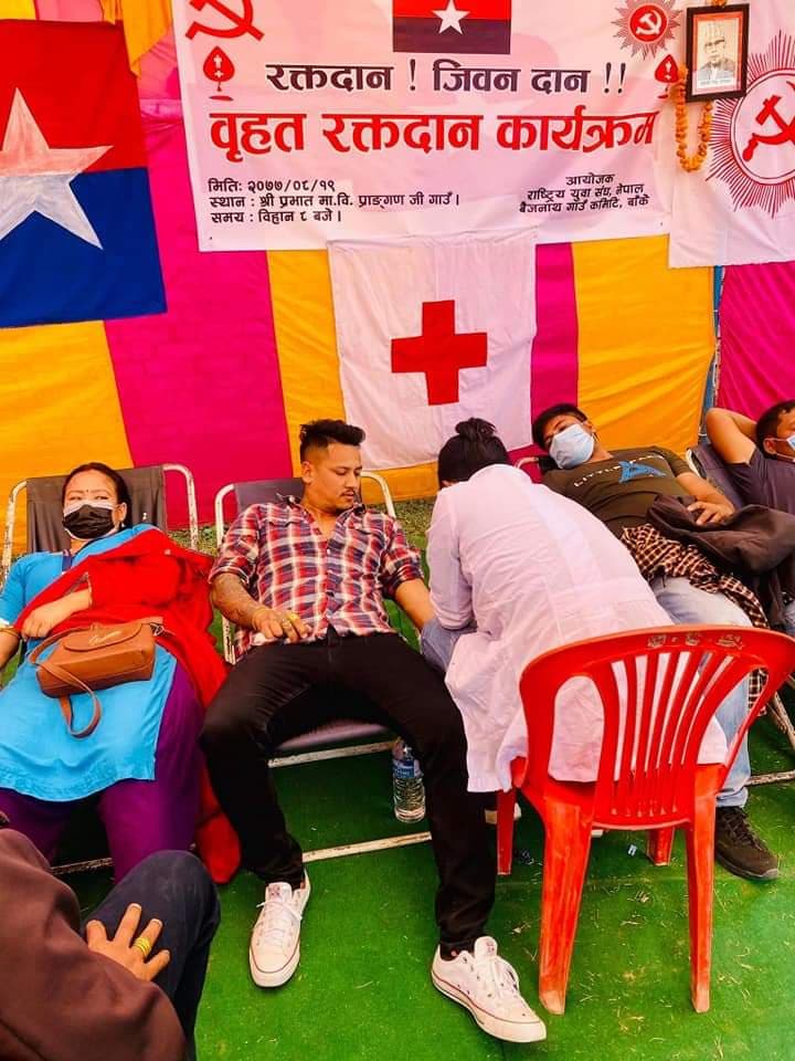 कोहलपुर १९, मंसिर । बाँकेको बैजनाथमा शुक्रबार बृहत रक्तदान गरिएको छ । राष्ट्रिय युवा संघ बाँके...