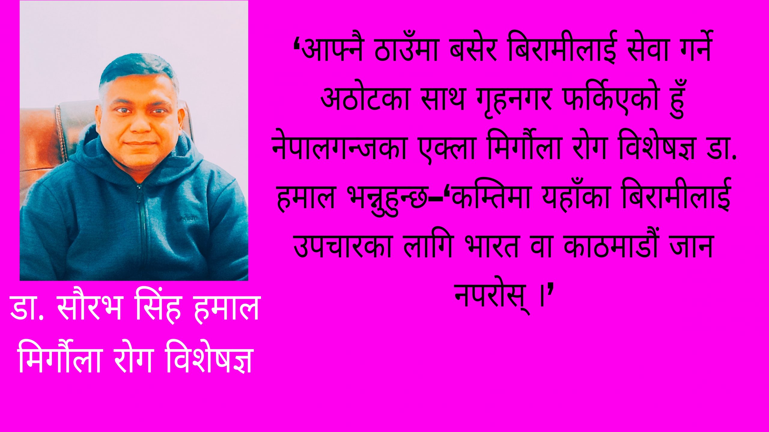 कृष्ण अधिकारी । पश्चिम नेपालमै कमै मात्र विशेषज्ञ चिकित्सकहरु छन् । धेरैजसो विशेषज्ञ चिकित्सकहरु...