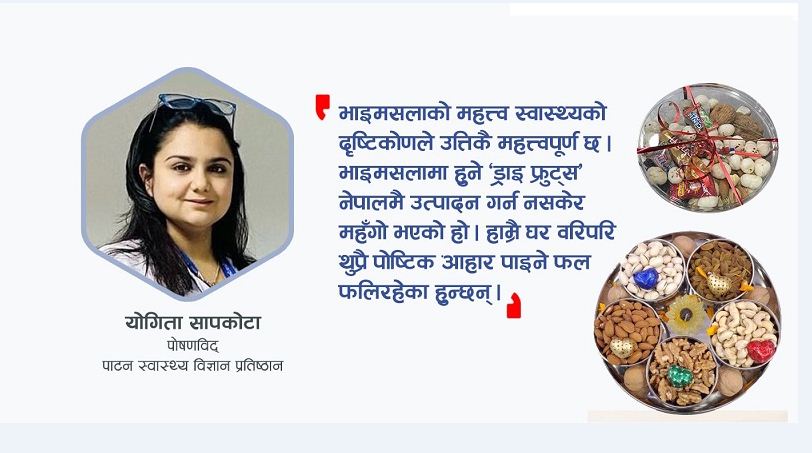 भाइमसला भनेपछि यसमा विभिन्न खानेकुरा समावेश हुन्छ । भाइमसलामा सुकेका फलहरू जस्तै– काजु, पिस्ता,...