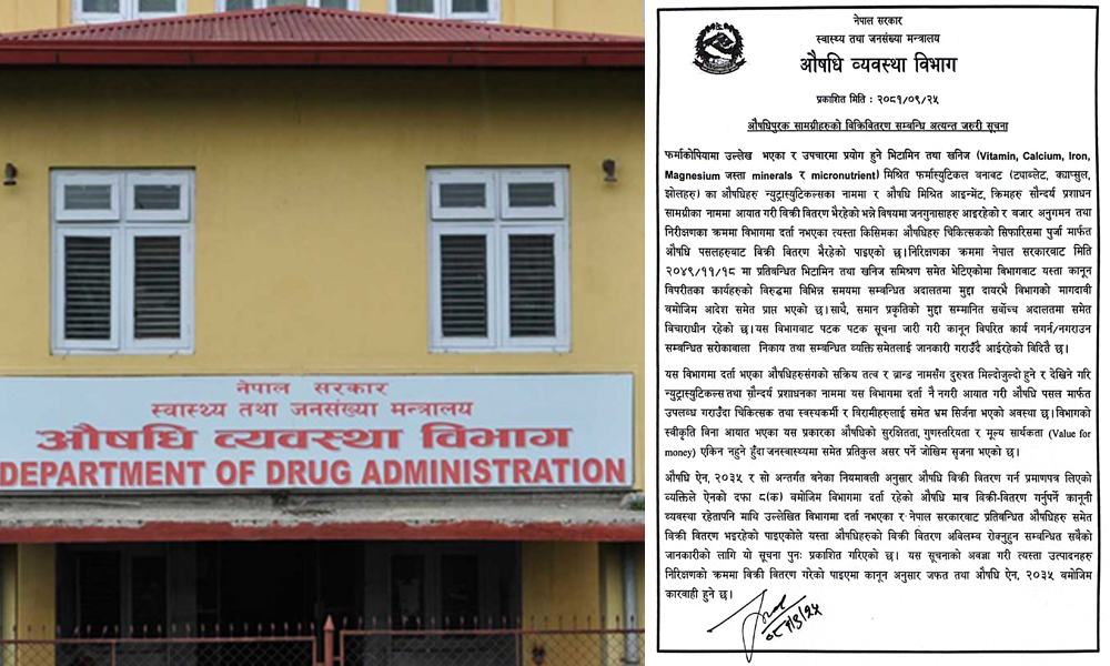 नेपालगन्जः औषधि व्यवस्था विभागले भिटामिन तथा खनिज मिश्रित फर्मास्युटिकल बनावटका औषधिहरु न्युट्रास्युटिकल्सका...